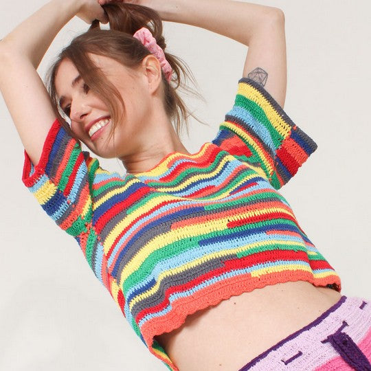 This super soft, cozy and comfortable Brielle multicoloured striped crochet top is a must have for the Winter season. Pair with your favorite jeans and boots for a warm winter look that is perfect for everyday.