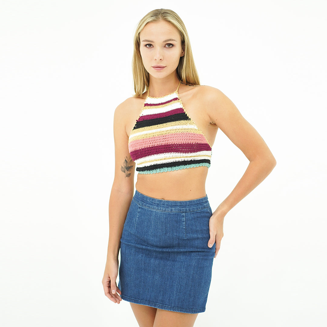 This vibrant and stylish crochet halter neck top is perfect for summer festivals, beach days, or any occasion where you want to show off your fun side. The top is made from soft and lightweight cotton yarn, and features a flattering halter neck design with a tie back for an adjustable fit. The bold stripes in a variety of colors make this top a real eye-catcher.