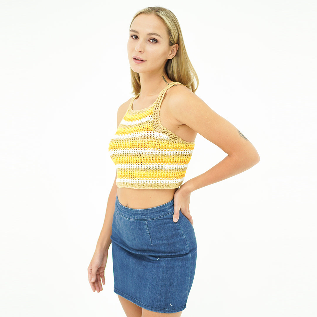 The Marigold Crochet Top is one of our best sellers for a reason! It's made with a beautiful stitch and happy shades of yellow, white, and brown, making it the perfect statement piece for any outfit. The top is also incredibly versatile, and can be dressed up or down depending on the occasion. For a casual look, pair it with jeans or shorts and sandals. For a more dressed-up look, try pairing it with a skirt or dress and heels.